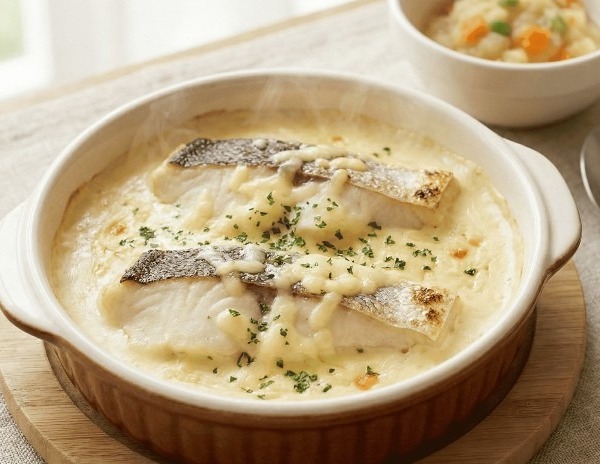 グラタンソースはレトルトをアレンジして、簡単に作ることができます。チーズは細かく刻むことで、口の中に残らないようになります。